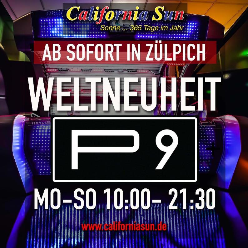 Ab sofort in Zülpich auf der Römerallee 48: WELTNEUHEIT P9! P9 heisst das neue Sensations-Solarium, welches in enger Zusammenarbeit mit F.A. Porsche entstand und neue Maßstäbe im Solarien-Design setzt.